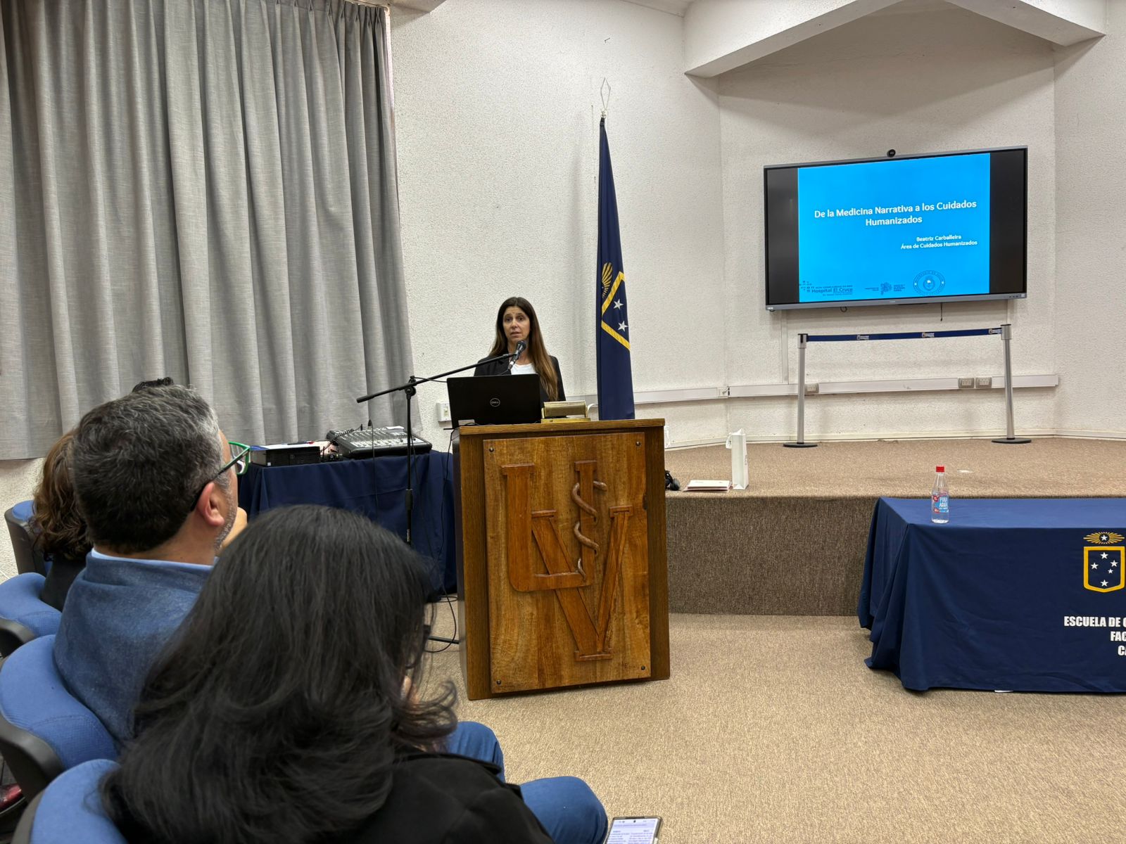 El día comenzó con la bienvenida de la directora del Centro Interdisciplinario de Investigación en Salud Territorial (CIISTe), Dra. Ana Zepeda, para dar paso a las charlas magistrales: “De la causa al modelo: El proceso científico como luz de ruta en propuestas de salud” a cargo de la Dra. Daniela Guzmán y “De la medicina narrativa a los cuidados humanizados” de la Dra. Beatriz Caballeira.