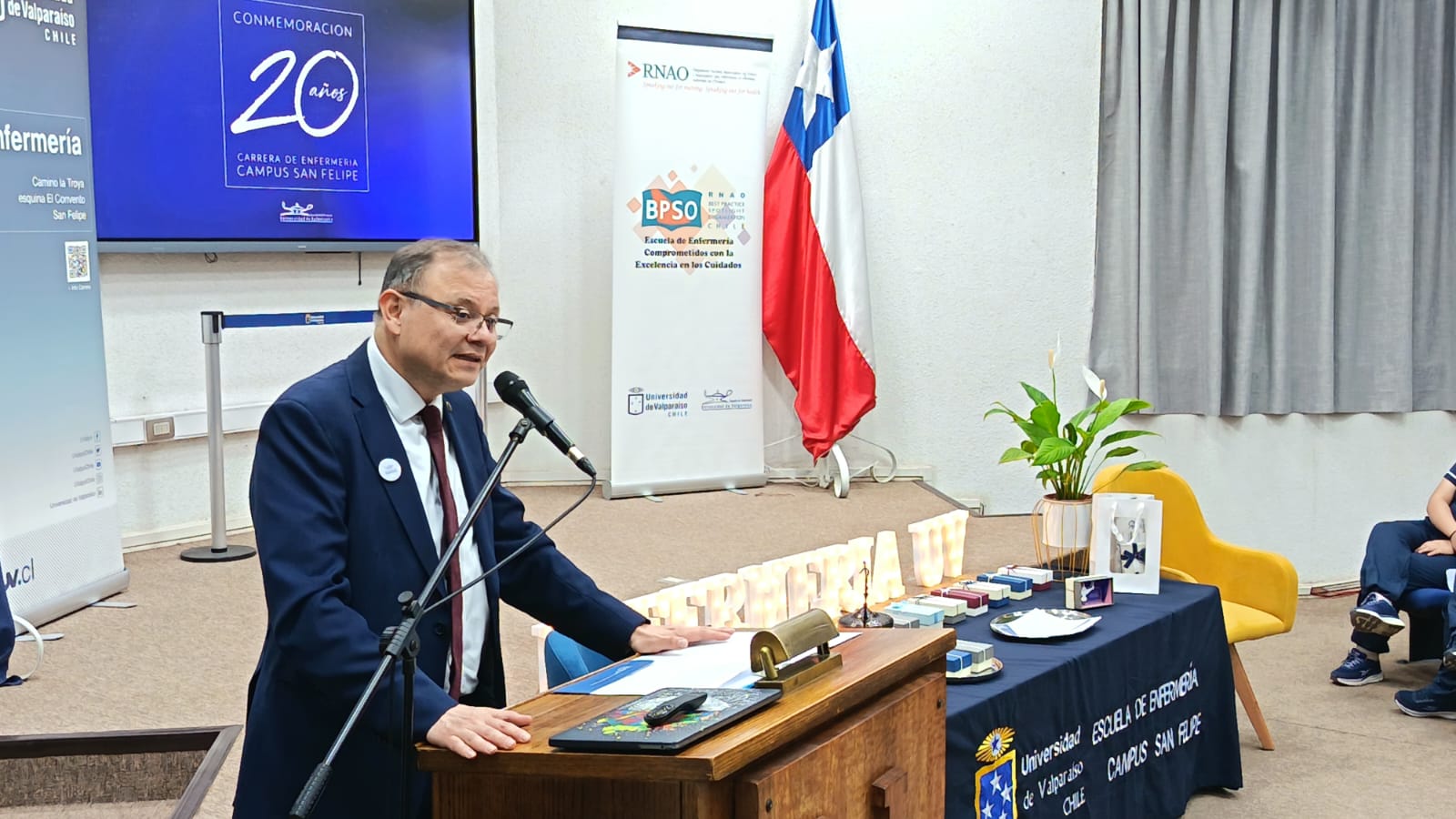 En una ceremonia encabezada por el rector de la Universidad de Valparaíso, Osvaldo Corrales, la carrera de Enfermería conmemoró 20 años de existencia en el Campus San Felipe UV, oportunidad en la que se destacó el trabajo realizado en estas dos décadas y se conocieron experiencias de profesionales egresadas.